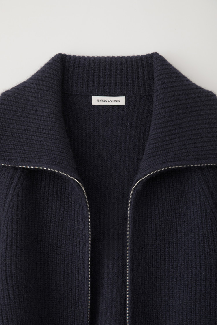 리브드 조직의 부드럽고 따뜻한 텍스처가 고급스러운 무드를 더하는 가디건 입니다. 카라 디자인이 단정하면서도 세련된 포인트를 주었고 전면 지퍼 여밈으로 간편하게 착용할 수 있습니다. 여유 있는 실루엣과 내추럴한 소재감이 조화를 이루어 데일리 아우터로 활용하기 좋은 아이템입니다.