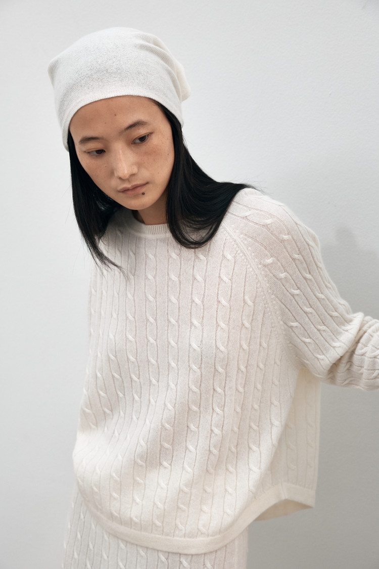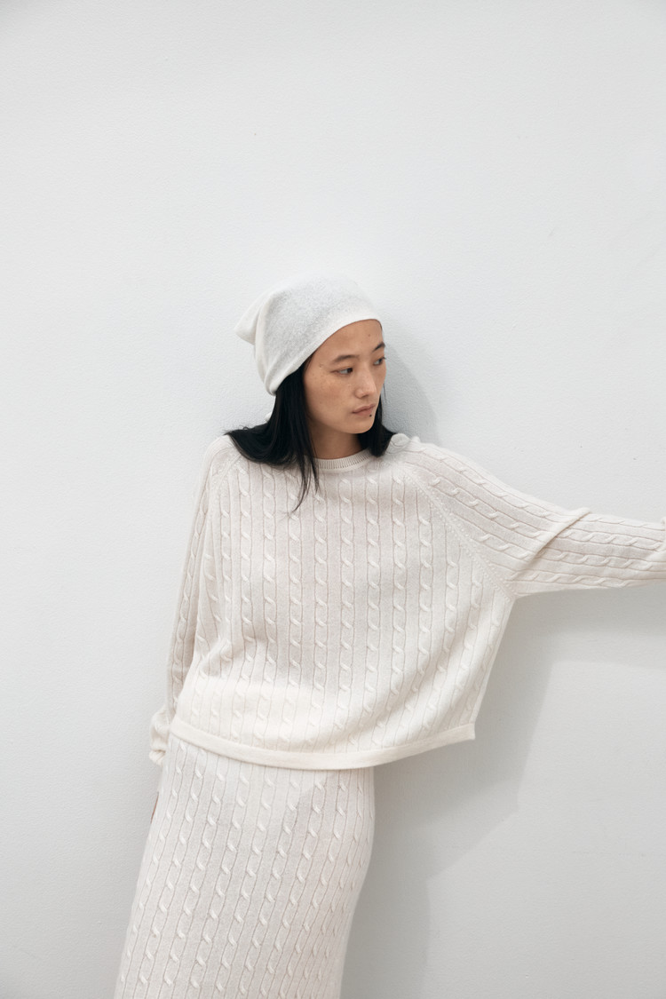 클래식한 짜임이 매력적인 풀오버 입니다. 살짝 크롭한 길이감으로 트렌디한 무드를 전해주며 돌클래식한 짜임이 매력적인 풀오버 입니다. 살짝 크롭한 길이감으로 트렌디한 무드를 전해주며 돌먼 슬리브의 여유있는 실루엣이 편안한 착용감을 느낄수 있으며 밑단 리브 마감으로 섬세하게 완성 했습니다. 케이블 스커트와 함께 셋업 스타일링 제안합니다.