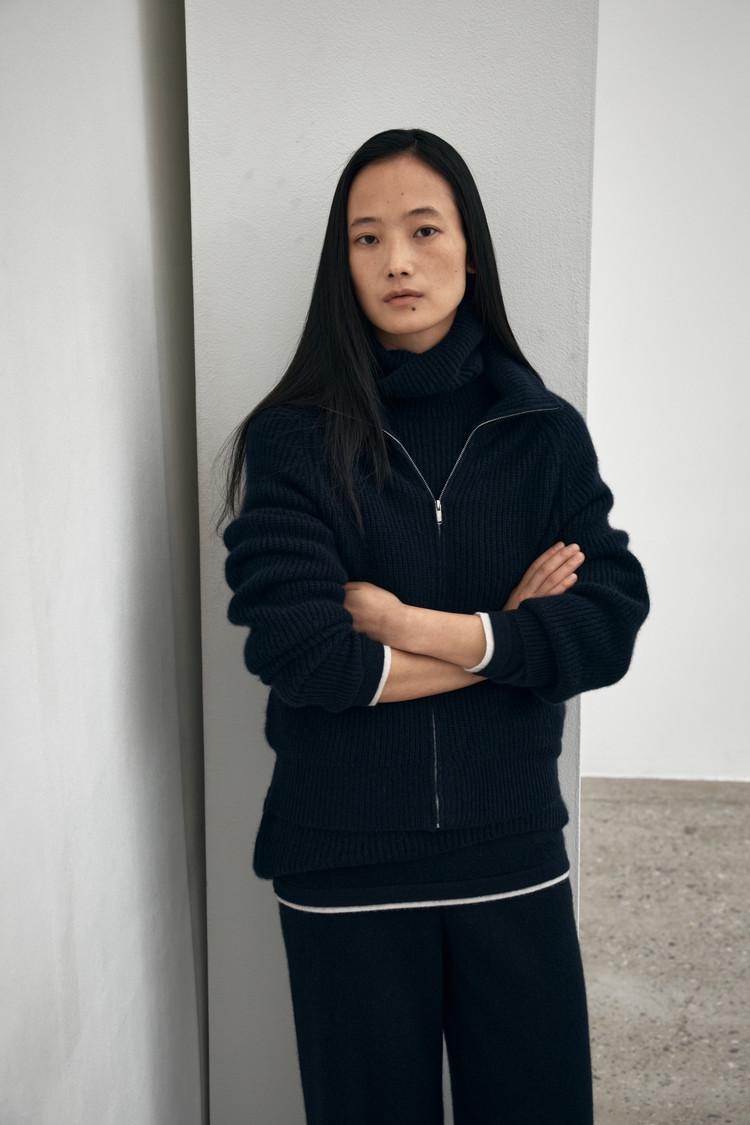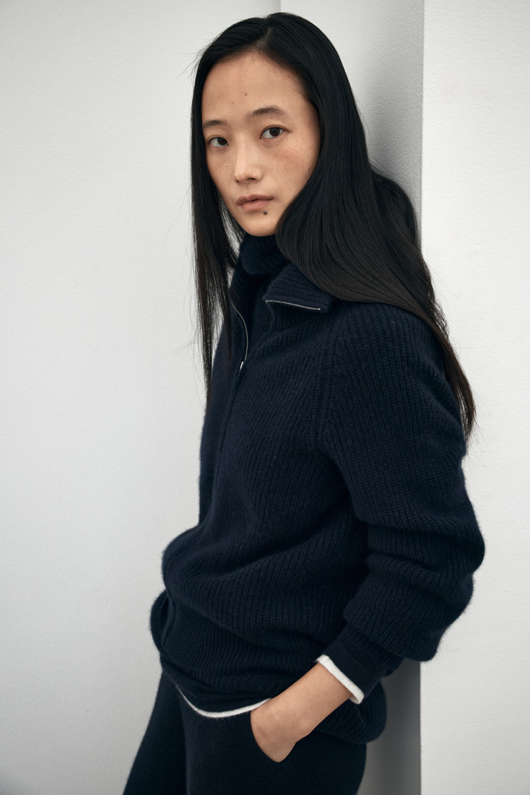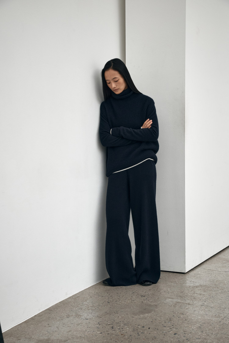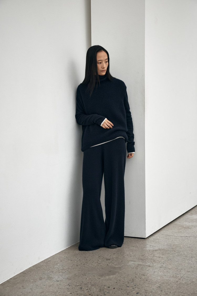 마치 두개의 니트를 겹쳐 입은 듯한 느낌의 풀오버 입니다. 넥라인, 소매단, 밑단 배색 컬러 블록으로 포인트를 주었고 깔끔한 외관으로 데일리 아이템으로 추천합니다.