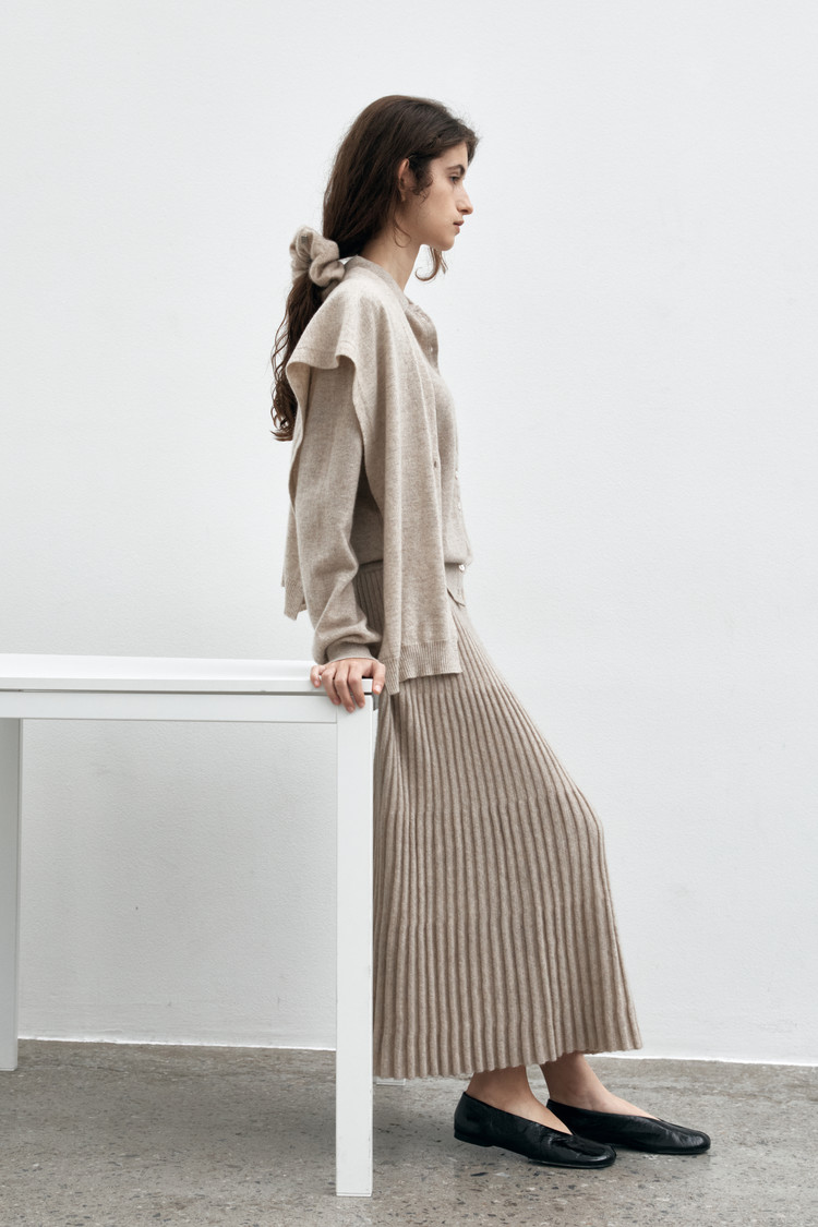 전체적으로 자연스럽게 퍼지는 플리츠 디자인의 스커트 입니다. 적당한 길이감의 우아하면서도 여성스러운 실루엣으로 데일리부터 포멀한 룩까지 다양하게 활용할 수 있습니다.
