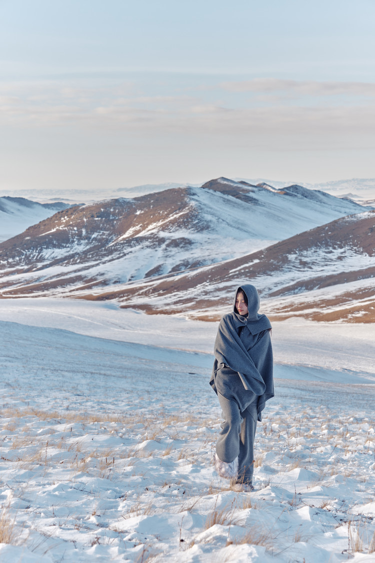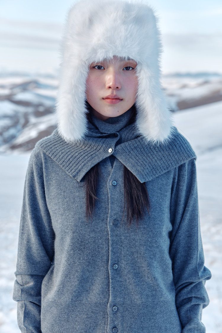라운드 넥 디자인과 전면 버튼 클로징으로 단정한 실루엣