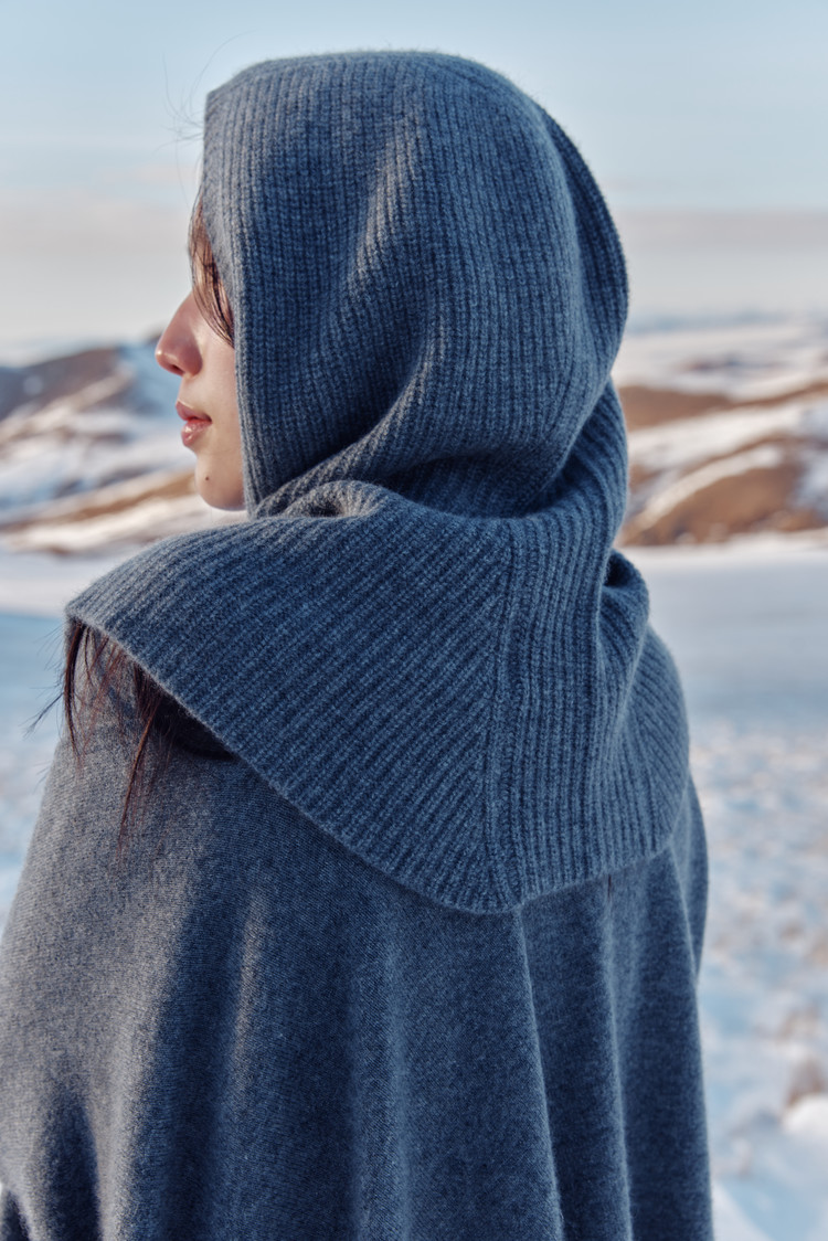 어깨를 감싸주는 스타일과 오버사이즈 후드와 머플러가 합쳐진 디자인으로 보온과 단추 클로징으로 실용성을 높였습니다.
