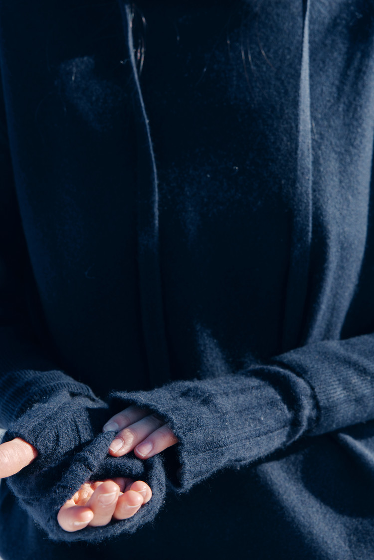 목을 충분히 감싸는 디자인과 높은 소맷단 디테일