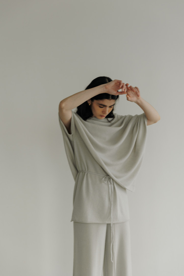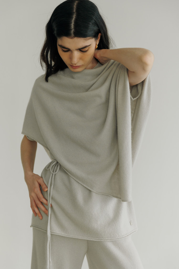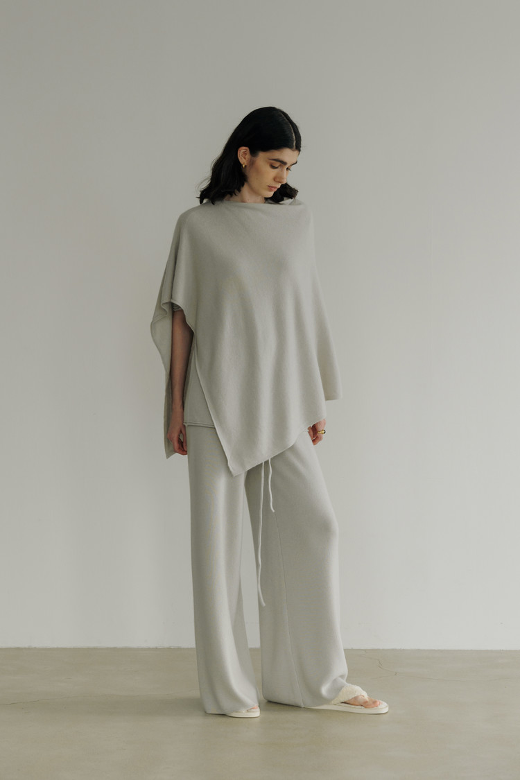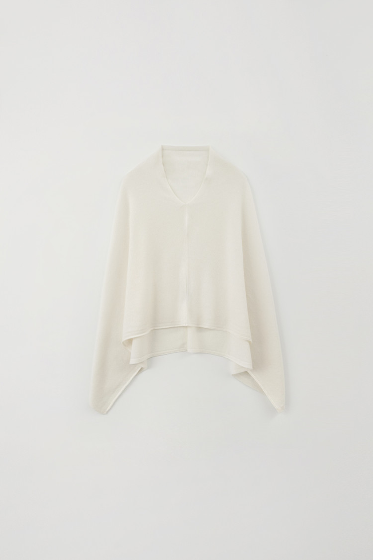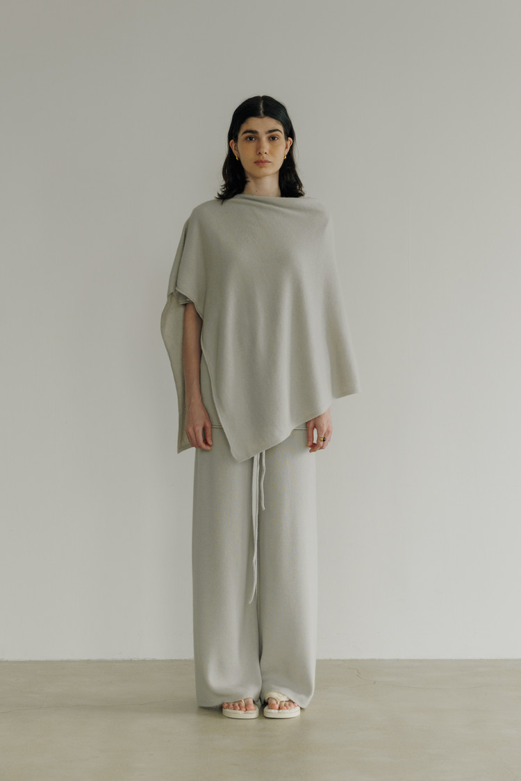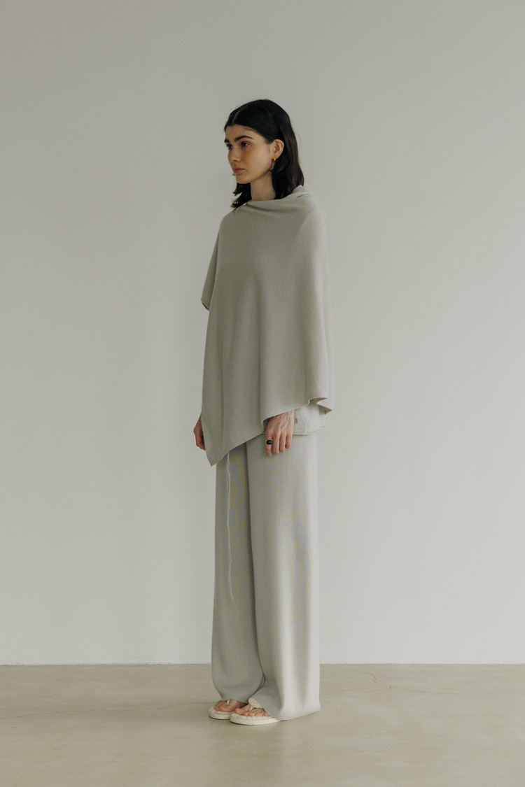 판초 스타일의 니트 머플러입니다. 바디에 자연스럽게 흐르는 듯한 실루엣을 연출합니다.